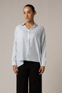 A wardrobe essential! A comfortable blue shirt featuring delicate thin stripes, crafted from remium modal fabric. Modal is a biodegradable fabric made from beech tree pulp, known for its incredible softness, breathability, and a moisture-wicking properties. This shirt is not only comfortable against the skin but also drapes beautifully. Whether you're dressing up for work or enjoying a casual day out, this versatile piece combines timeless style with modern comfort.