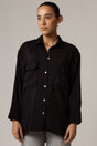 قميص فضفاض بجيوب أمامية - أسود