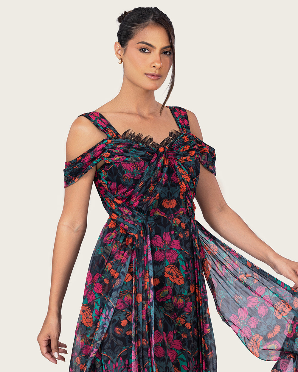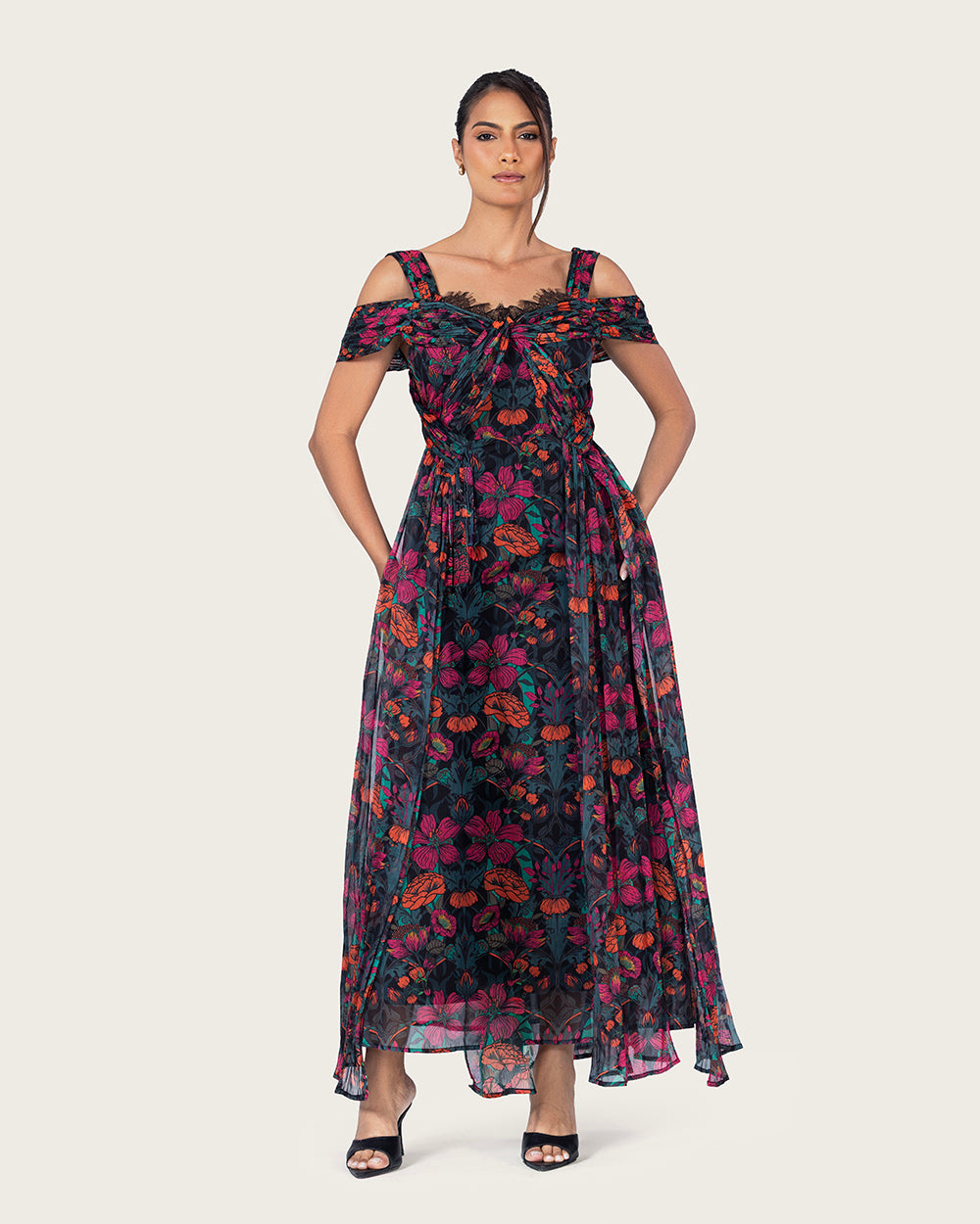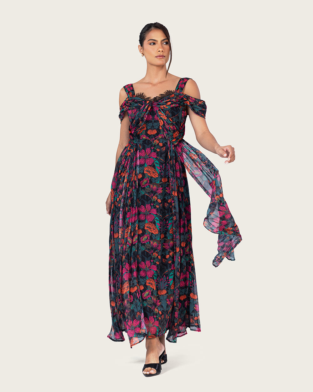 A romantic silhouette crafted from airy chiffon, designed to move with effortless grace.