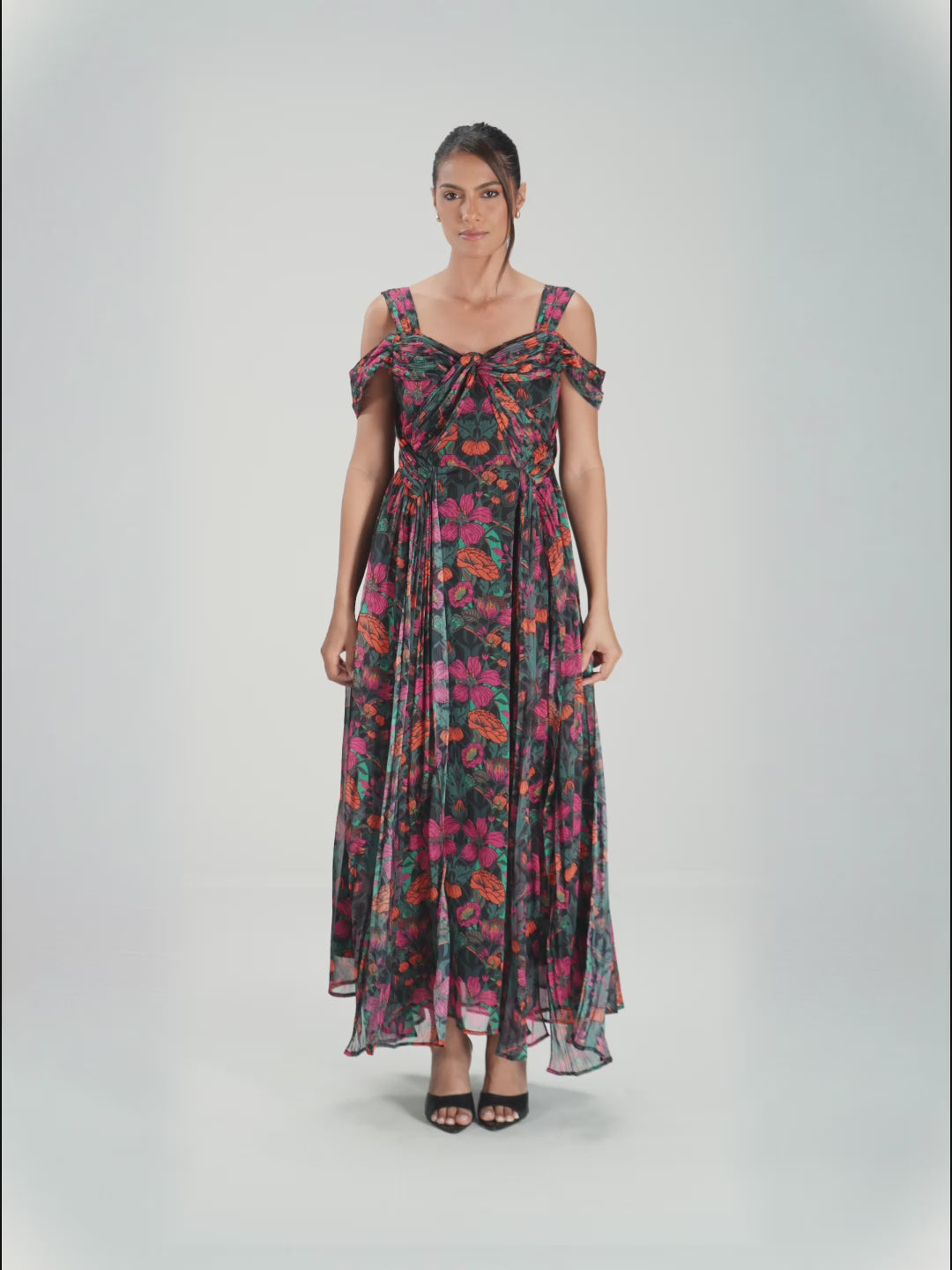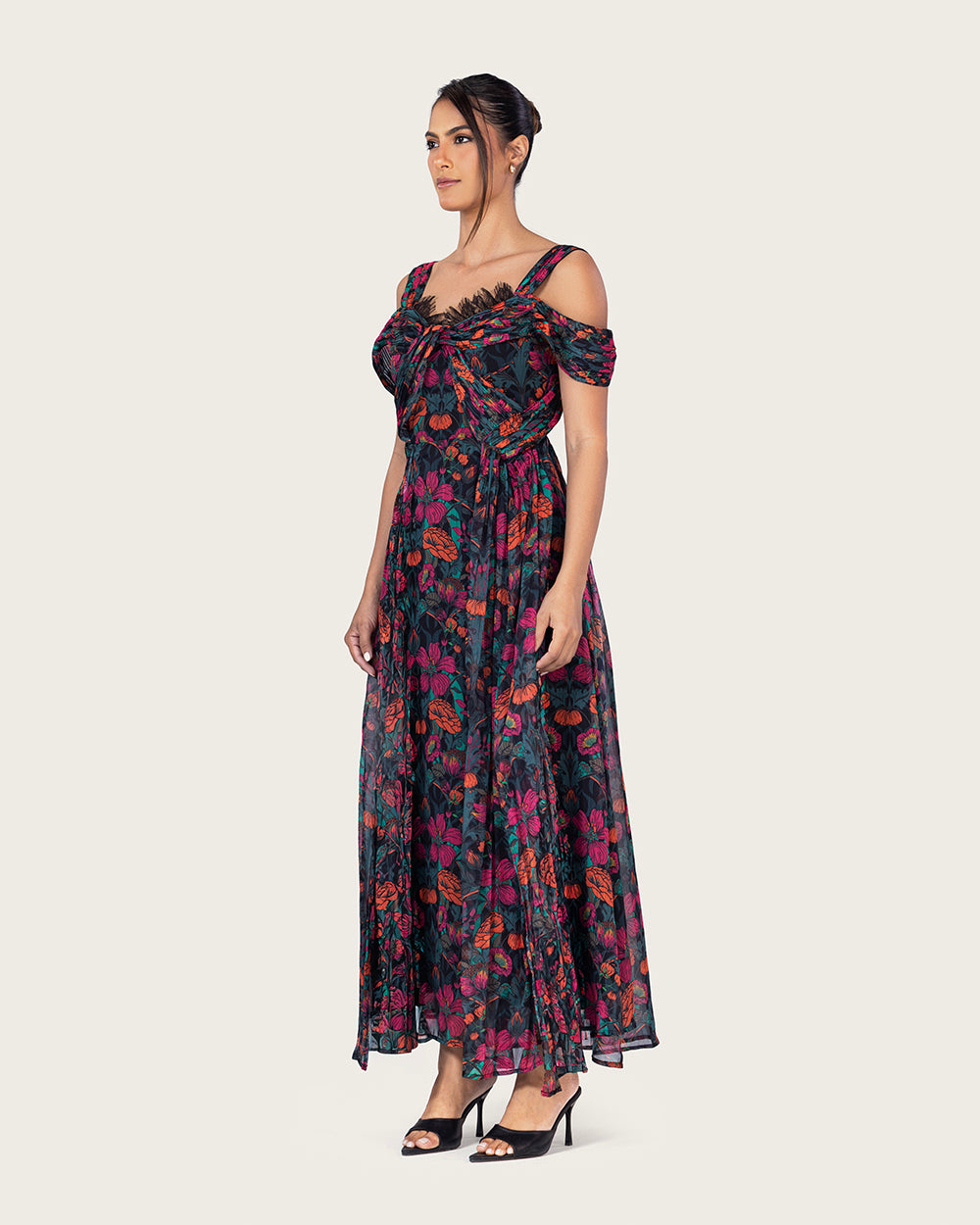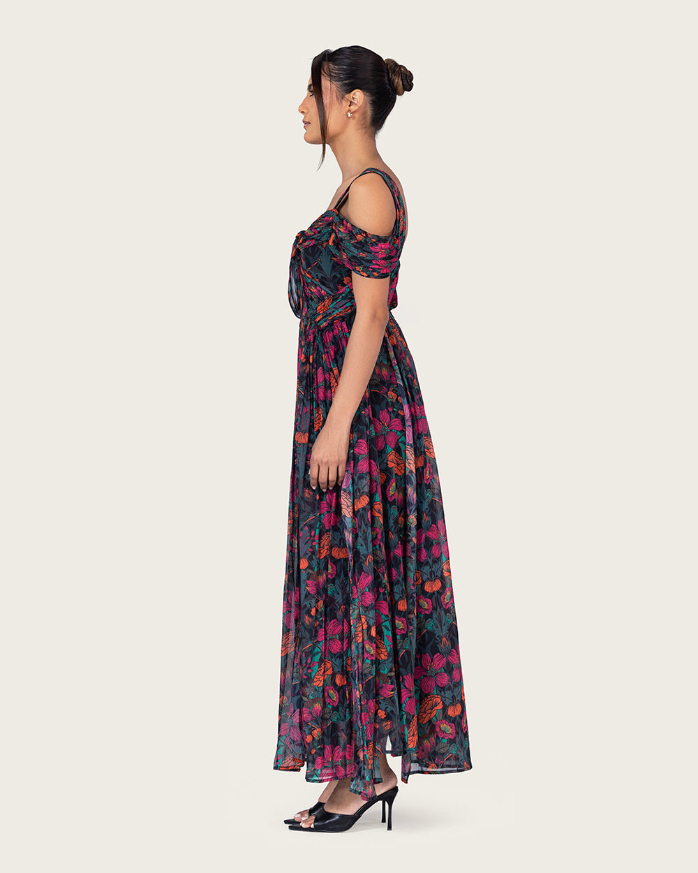 A romantic silhouette crafted from airy chiffon, designed to move with effortless grace.