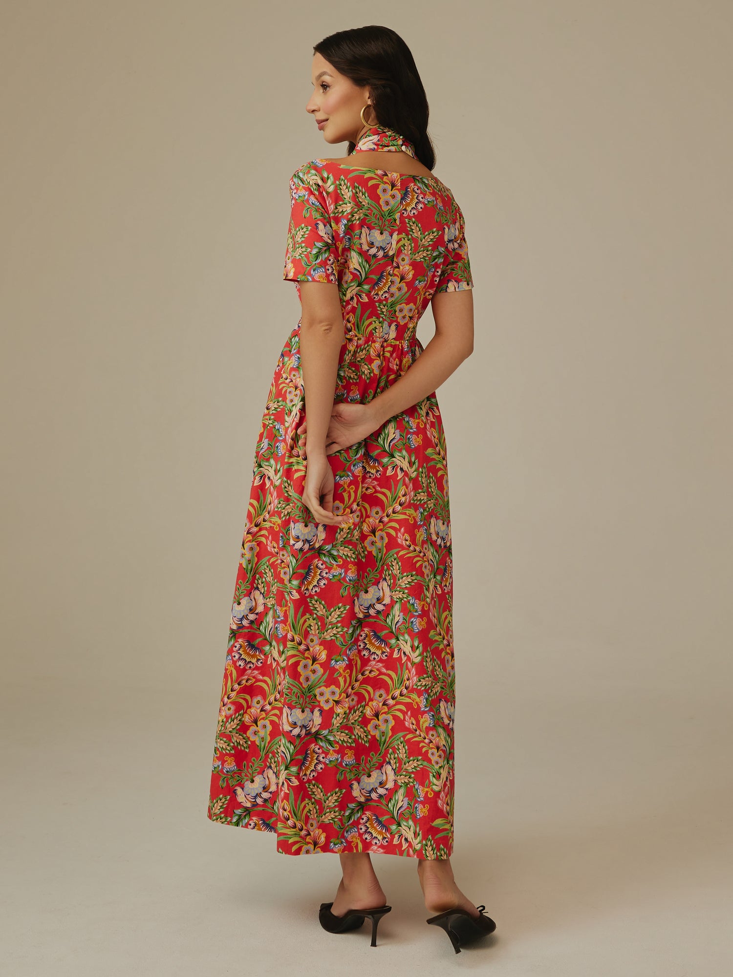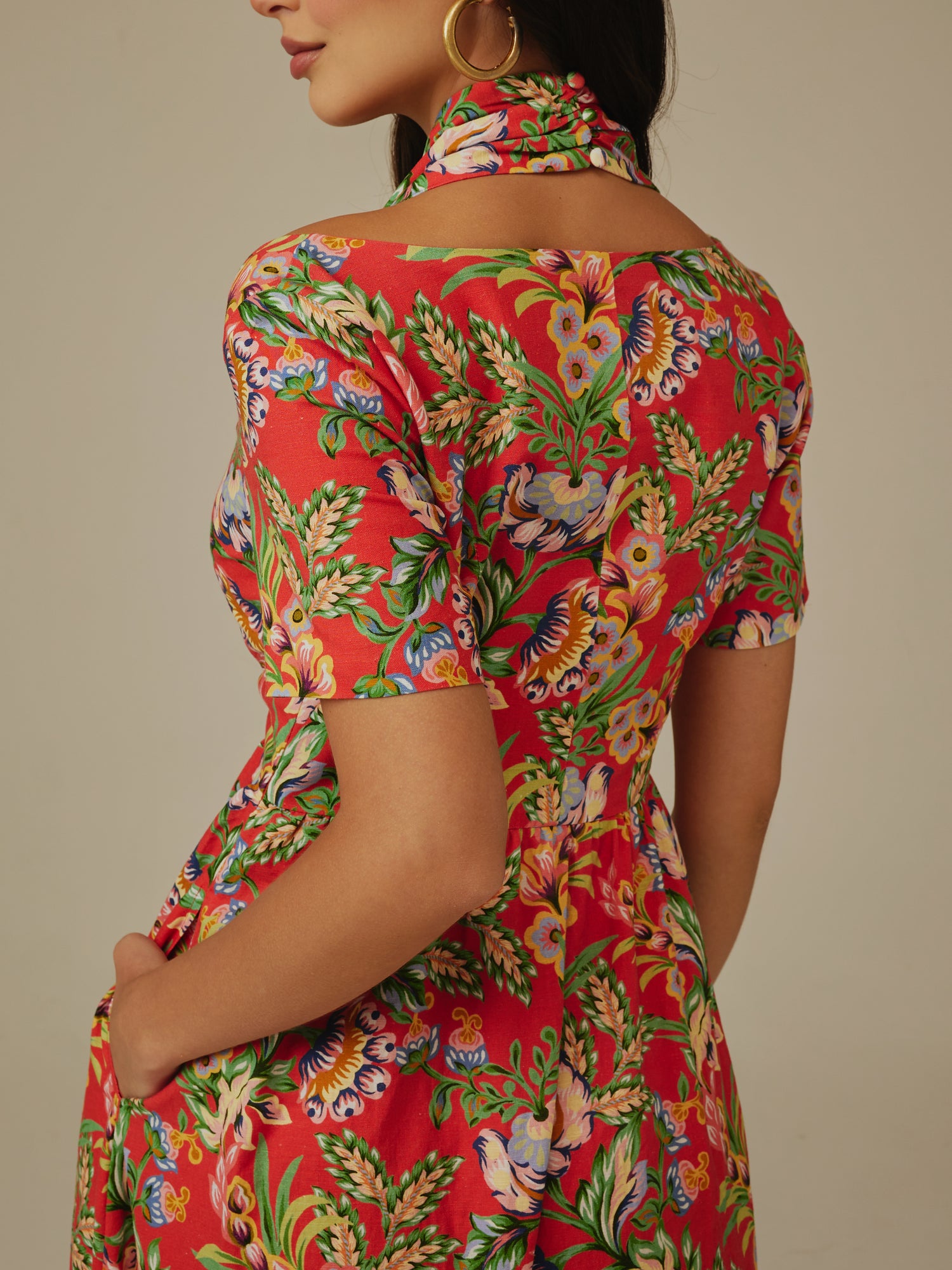 فستان احمر مزهر كتان : لما يجتمع الذوق مع الراحة