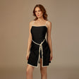 Designed with simplicity and elegance in mind, this sleek one-piece swimsuit features contrast piping and a wrap-style skirt with hidden lined shorts underneath. Adjustable and removable straps let you switch between support and a clean strap-free tan. A timeless piece for effortless poolside style.