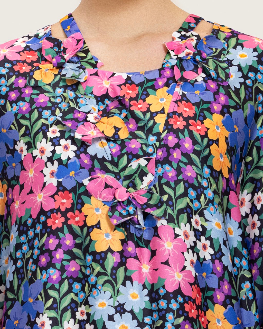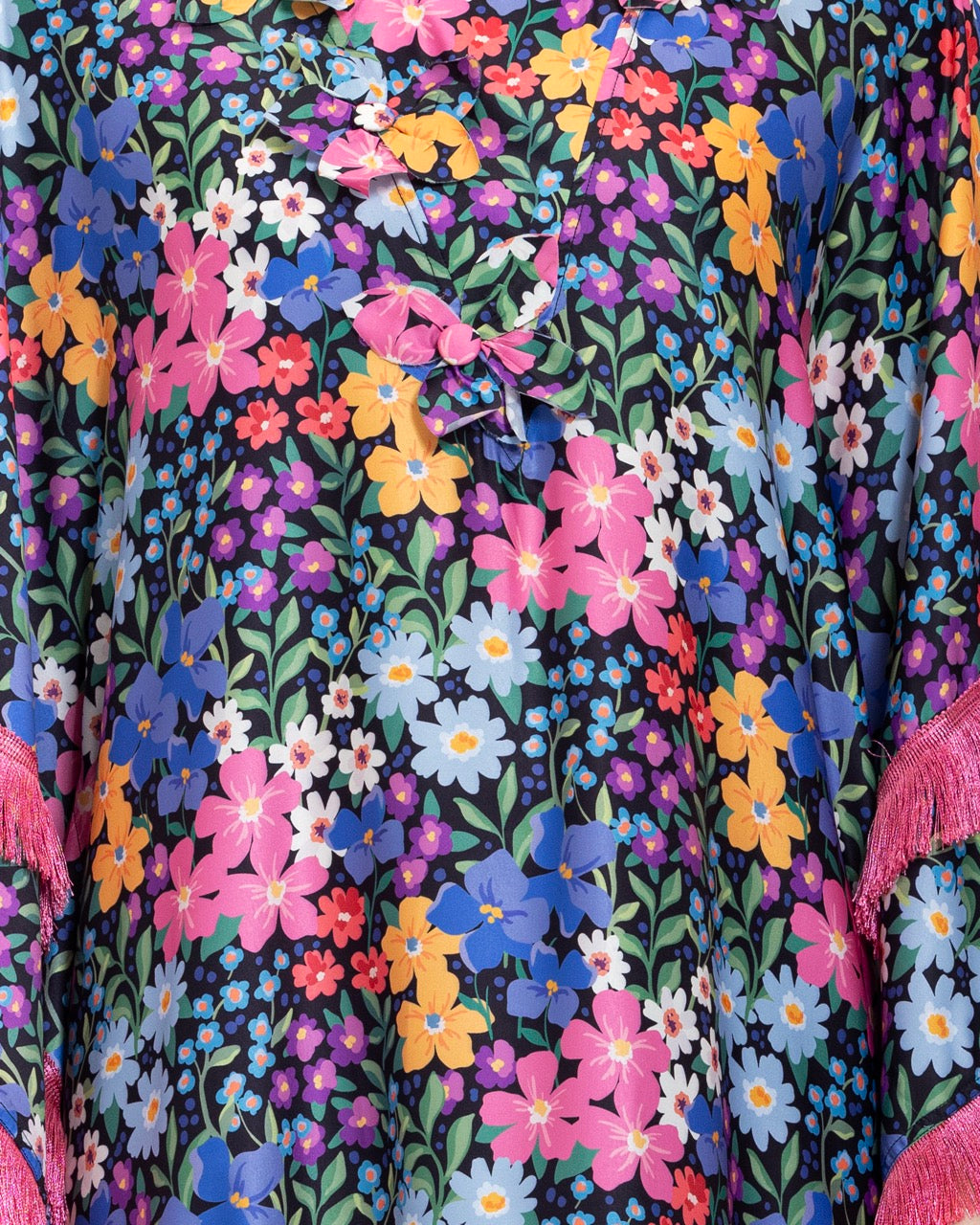 فستان ستان ملون مطبوع بأهداب وتفاصيل ورود ثلاثية الأبعاد - S تم طلبه مرة أخرى وسيتم شحنه بمجرد عودته إلى المخزون.