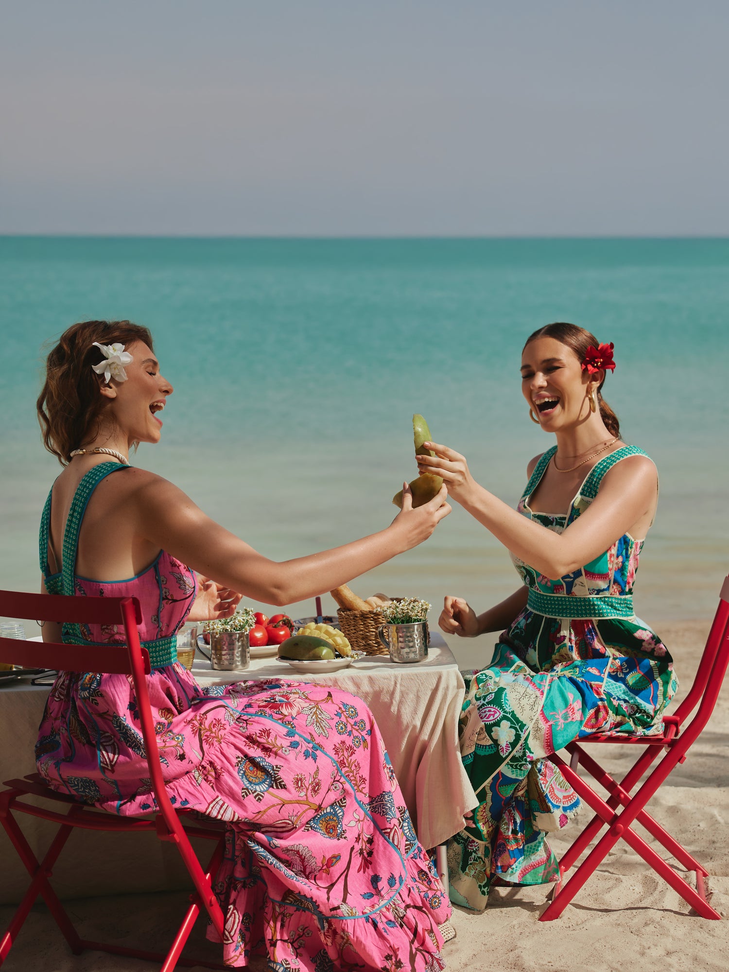 This dress is a burst of summer energy. Made from soft, breathable cotton, it features a vibrant floral print and contrasting green straps and waistband with tiny eyelet detailing. The silhouette is easy and flowy with a tiered hem that moves beautifully. It’s the kind of dress that makes you want to spin.
