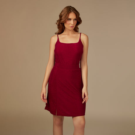 459.00سعر الوحدة /غير متوفرمايوه عنابي مع تنورة قطعتين بقماش لامع
