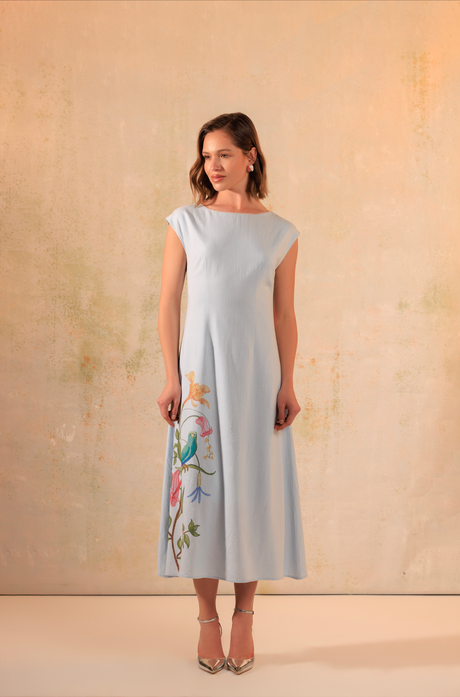 549.00Unit price /UnavailableBaby Blue Linen Midi Dress with Floral Placement Print