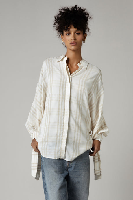 298.00Unit price /Unavailable Plaid Viscose Cotton Blouse with Tie Wristbands