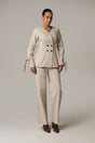 Perfect for the office or any special occasion, this chic twill grey suit set features tie wristbands and a unique neckline shape making it modern and chic at the same time. Elevate your wardrobe with this versatile piece that combines fashion-forward design with a timeless appeal!
